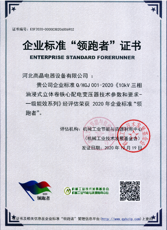 企業(yè)標(biāo)準(zhǔn)領(lǐng)跑者證書